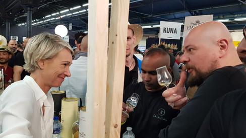 L'exclusivité du stand était la future Brut de Colonne 2019 que nous avons dégusté et particulièrement apprécié. Titrant à 75%, elle est en cours de finition. Nous avons également pu goûter un assemblage spécial "Privilège pour Lulu" (45%) en hommage à Lulu, grand mère Dormoy . Sortie prévue en fin d'année. La Bel Air 2018 et la Digue 2018 étaient également en dégustation. Merci à Emmanuelle pour son accueil et sa disponibilité.